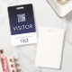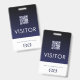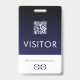 Keep your visitors and guests easily identified with this customisable company logo visitor badge. The navy blue and white design features a customisable logo and text that reads "Visitor" in a simple font. A QR code makes it easy for guests to access important information about your facility or event. The text at the bottom reminds visitors to please return the badge before leaving. This badge is perfect for businesses, hospitals, schools, museums, attractions, and more.