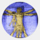 Leonardo Da Vinci's Vitruvian man in dramatic blue and gold colours.