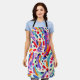 This is an abstract colourful design with vibrant hues in animal-like pattern (tiger or leopard).