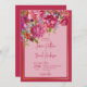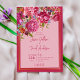 Viva magenta burgundy peonies elegant floral wedding invitation with QR RSVP at the back.