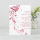 Viva magenta and white floral garland QR code wedding Invitation. Celebrate your special day with our stunning magenta and white floral garland wedding invitation! The vibrant magenta floral garland on the left side adds a pop of colour and elegance to the design. The classic typography used gives the invitation a sophisticated and timeless look that will surely impress your guests. Don't forget to check out the back of the invitation, where you'll find a convenient QR code for easy online RSVP. Make your wedding planning a breeze with this beautiful and modern invitation!