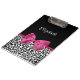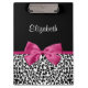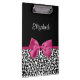 A trendy black and white leopard print clipboard with a vivacious dark pink ribbon tied into a cute girly bow. Personalise this chic and stylish animal pattern design by adding the name of your teen girl. Flat printed image, not actual ribbon.