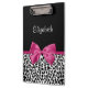 Vivacious Dark Pink Ribbon Leopard Print With Name Clipboard