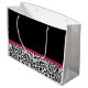 A trendy black and white leopard print large size gift bag with a vivacious dark pink ribbon tied into a cute girly bow. Personalise this chic and stylish animal pattern design by adding the name of your teen girl. Flat printed image, not actual ribbon.