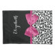 A trendy black and white leopard print pillow case with a vivacious dark pink ribbon tied into a cute girly bow. Personalise this chic and stylish animal pattern design by adding the name of your teen girl. Flat printed image, not actual ribbon.