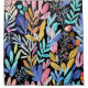 A colourful floral pattern with tropical leaves and flowers, creating a vibrant and lively design