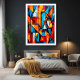 This dynamic and vivid artwork features an explosion of geometric forms, interplaying in a vibrant cubist style. The artwork, created using AI, showcases bold, intersecting shapes and a rich colour palette dominated by warm reds, oranges, and cool blues. These sharp lines and contrasting hues bring a sense of movement and energy, making this piece a perfect statement for any modern space.