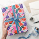 The image is a vibrant, abstract pattern featuring bold, colourful shapes and marks that resemble fruits, flowers, and various organic forms in a playful and whimsical composition.