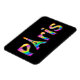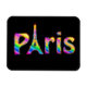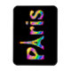 A design as fun as Paris itself. The text Paris in a vivid array of a rainbow of colours with the "A" in Paris an outline of the Eiffel Tower.