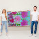 Vivid Pink Flower Drawing on Blue Throw Blanket
