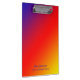 This clipboard is fun! The bright "Vivid Rainbow" pattern, with red, yellow, orange, blue, and purple, is quite eyecatching. The two lines of example text can easily be modified or deleted. Default is Name and World's Greatest Teacher. All Rights Reserved © 2014 Alan & Marcia Socolik.