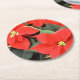 Vivid Red Christmas Poinsettias Round Paper Coaster
