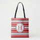 Vivid Red & Grey Modern Striped Tote Bag