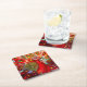 Set of six cork back coasters printed with a vivid abstract design of a peacock in shades of red. These coasters will certainly brighten up any social gathering.