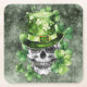 Vivid Skull with Green Hat Illustration Square Paper Coaster
