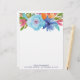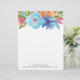 This trendy and beautiful letterhead features a watercolor bouquet full of flowers and leaves in shades of blue, turquoise, bright pink, orange, and green.