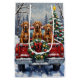 Bring warmth to the holiday season with this beautiful Vizsla Christmas design! This vibrant scene features three loyal, russet-colored Vizslas sitting attentively in the back of a classic red pickup truck, parked in a serene snowy winter forest. The vintage truck is charmingly decorated with a festive Christmas wreath, adorned with sparkling red and gold ornaments and warm, glowing lights. Soft snowflakes drift down, enhancing the winter wonderland effect. A decorated Christmas tree in the background completes this heartwarming picture, making it an ideal Christmas gift for any Vizsla owner, dog lover, or enthusiast of festive and elegant dog breeds. This artwork perfectly captures the joyful spirit of the holidays.