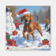 Vizsla Running in Snow with Christmas Hat Magnet