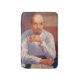 This design features a vintage painting by the Russian artist Kuzma Petrov-Vodkin (1878–1939). It is a portrait of Vladimir Lenin, leader of the Bolshevik party, which took control of the government of Russia in 1917, making him the first leader of the USSR (Union of Soviet Socialist Republics). Vladimir Lenin is depicted here wearing a white shirt as he sits at a desk in his office; there are books on the table in front of him and maps on the wall behind him. Lenin looks determined and in control.