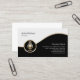This vocalist business card features black and white segments separated by a wavy gold strip. An elegant gold icon of a microphone lies on the lower left side of the design, that's generally suitable for businesses or professions related to music, bass, bassist, bass guitarist, musician, band, entertainment, rock themes.