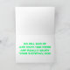 This card is great fun and good quality. I loved the humour inside and on the back. There is the opportunity to change the orientation of this card from landscape to portrait, which I did. It is relatively straightforward to amend the typeface to fit the new orientation. It was well packaged with no plastic. The printing on this card is excellent.