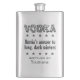 The product is a good size and came exactly as it was pictured. The lid is not attached to the flask, which could be dangerous on drunken nights... The print came out surprisingly well and looks very sharp. Would definitely recommend.