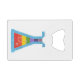 A funky rainbow vial design placed on a credit card bottle opener.