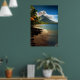 Volcanos, White Sand Beach with Palm Trees Poster