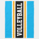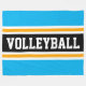 This sporty design features athletic VOLLEYBALL text inside a highlighted wide black stripe with white and yellow stripes against wide bright sky blue outer stripes. The text and colours in this design can be personalised.