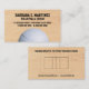 A volleyball is cropped off on the bottom of this business card on a smooth parquet floor waiting to be picked up. Main contact information prints against the wood background. The reverse shows a diagram of a volleyball court against the wood with web information printing on top of it and a tagline or other information printing below. Perfect for volleyball coaches, teams, scouts, leagues, sporting good stores or any sports retailer. Available with matching products.