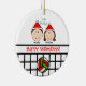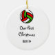 The family that volley's together stays together! Ornament features a volleyball and net with space on tape for custom sentiment. Above the net on this version is a couple graphic with custom fields for names underneath and family name above. Check our store for other family's with 2, 4, or 5 members. Create an ornament that will become a surefire favourite and perfect for any volleyball family!!