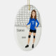 Volleyball Female Brunette Blue & Black Ceramic Tree Decoration