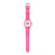 Super cute glitter pink watch featuring a grey volleyball with moustache graphic on face.