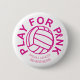 Volleyball Play for Breast Cancer Awareness Pin. A Pink Ribbon brings awareness to Breast Cancer. Show support and strength for Breast Cancer survivors, patients and their family and friends.