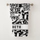 This fun volleyball themed towel set features a random pattern of varied size black and white volleyballs turned every which way on a white background - personalise the bath towel & hand towel with her name - by katz_d_zynes