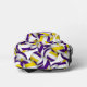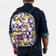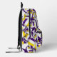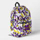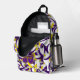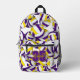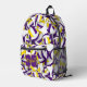 This volleyballs pattern backpack features a random, varied size purple, gold & white volleyballs turned every which way on a customisable white background - personalise with the athlete's name & jersey number - by katz_d_zynes