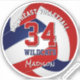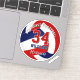 This team colours volleyball sticker for girls or boys features the realistic image of a volleyball that has red, blue and white panels - customise the player's name, jersey number, team name and mascot name - by katz_d_zynes
