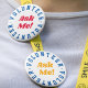 "Volunteer" Ask Me Button Pin in Blue and Orange
