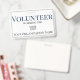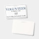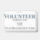 This custom identification badge features the title "Volunteer" printed in a large, bold blue font near the top of the badge. The following text contains the volunteer or employee information and name of the company or organisation. The volunteer identification badge is bordered with a simple grey coloured frame. A sample company or business logo is placed in the centre which you can replace with your own logo or other image.