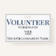 This custom identification badge features the title "Volunteer" printed in a large, bold blue font near the top of the badge. The following text contains the volunteer or employee information and name of the company or organisation. The volunteer identification badge is bordered with a simple grey coloured frame. A sample company or business logo is placed in the centre which you can replace with your own logo or other image.
