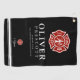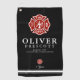 A custom Firefighter themed black golf towel tailored to the volunteer firefighter. The Maltese Cross is representative of American Firefighters and fire rescue.