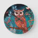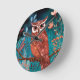 Vom Künstler handillustrierte Eule – Boho Natur Round Clock
