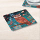 Vom Künstler handillustrierte Eule – Boho Natur Square Paper Coaster