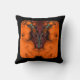 This dramatic decorative throw pillow features an abstract fractal design of a voodoo spirit in shades of red, black, green and blue. His horns are blue and he is surrounded by a brilliant orange gaseous cloud. The image is repeated on the back.