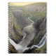 Notebook with Voringsfossen waterfall in Mabodalen canyon during sunset. It is the heighest watervall in Norway.