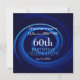 Abstract digital art with a blue spiral. Design on square flat card invitation with text for a modern 60th Birthday Celebration. Matching Birthday Save the Date (postcard), guest book (hard cover, spiral notebook and binder), party supplies and more...