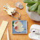 Two calla lilies seem to swirl as if caught in vortex, which causes them to twist on each other. Colour photograph of white calla lilies. Design and customise this calla lily flower key chain with your personalised keychain message. Makes for great white calla lily flower art gifts!