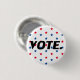 Vote black typography on red white and blue stars pattern patriotic modern political election pin button.