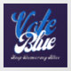 Democrat slogan typography style window cling that's suitable for home or business, has "Vote Blue" and "Keep Democracy Alive" in retro style blue and white fonts