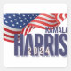 Show the country who belongs as the next President of the United States with these standard square stickers! "Kamala Harris 2024" text in patriotic coloured text with wavy American flag